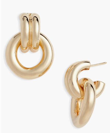 - Sparkle & Shine: Because the clothes are dark and textured, use the Jennifer Zeuner Francesca Collar Necklace and Jennifer Zeuner Hoop Earrings to bring light to your face.