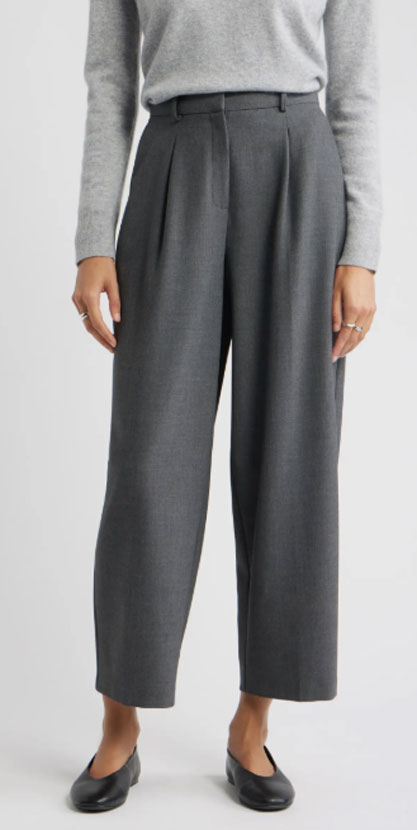 How to Create It: This look proves that “professional” doesn’t have to mean “boring.” Start with the Nordstrom Pleated Ankle Pants in a neutral grey. Contrast the structured bottom with the Vince Camuto Electric Bouquet Sweater—the floral print adds a pop of personality and color.
